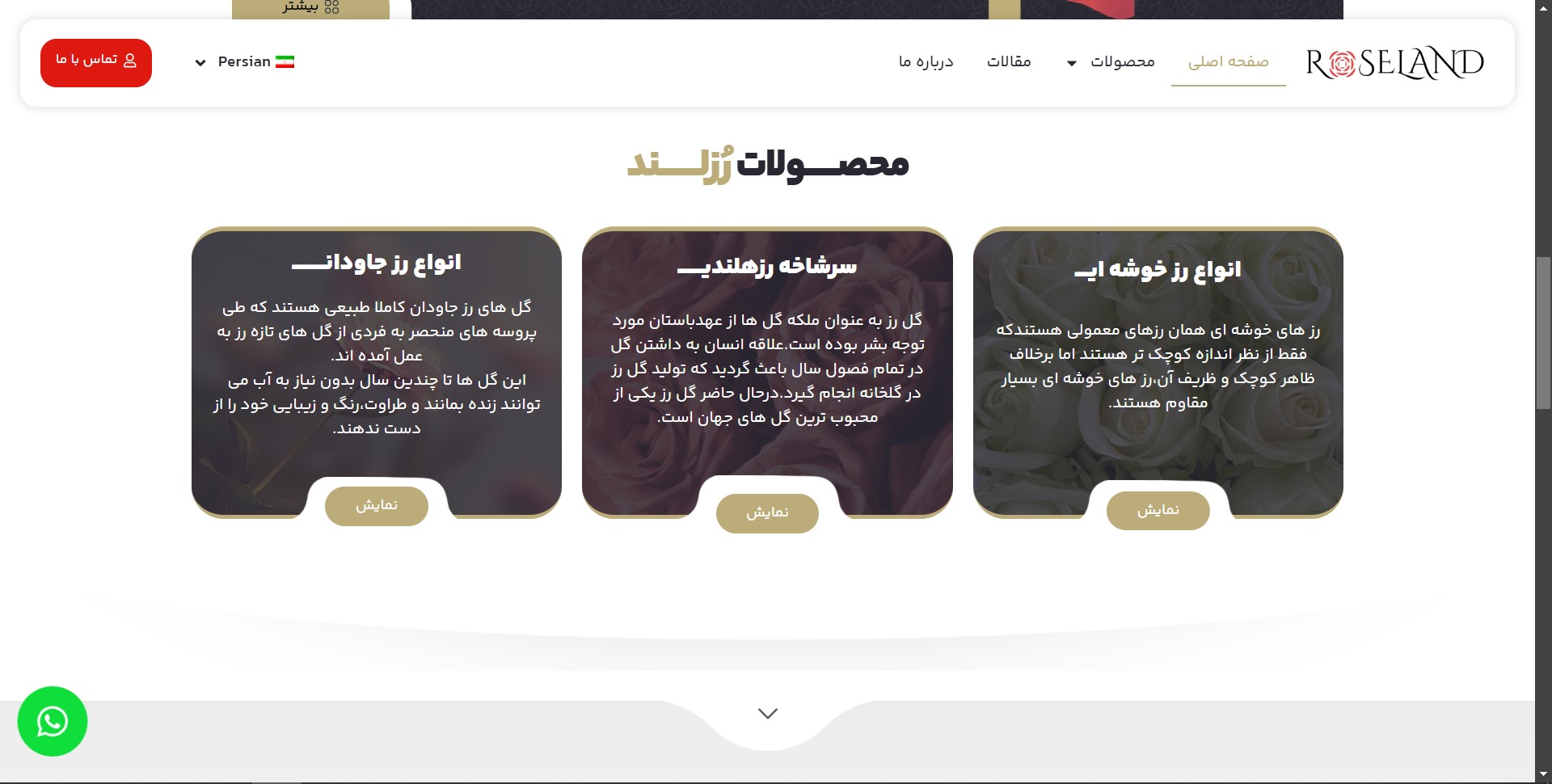 وب‌سایت بازرگانی رزلند به سفارش این مجموعه و با هدف معرفی محصولات متنوع از انواع گل‌های طبیعی طراحی شده است. این وب‌سایت با بهره‌گیری از یک رابط کاربری (UI) اختصاصی و طراحی کاملاً ریسپانسیو، تجربه‌ای یکپارچه را در تمامی دستگاه‌ها ارائه می‌دهد. دسته‌بندی متنوع گل‌های طبیعی و توجه به هویت بصری برند از ویژگی‌های برجسته این پروژه طراحی سایت است. همچنین، وب‌سایت رزلند به صورت چندزبانه طراحی شده تا بتواند کاربران بین‌المللی را نیز پوشش دهد.
