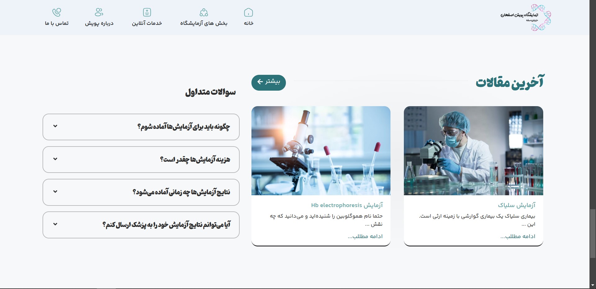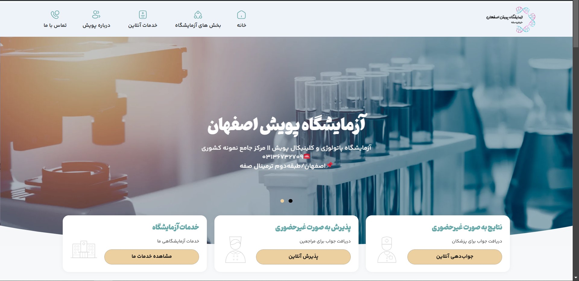 طراحی وب‌سایت پزشکی برای آزمایشگاه پویش اصفهان