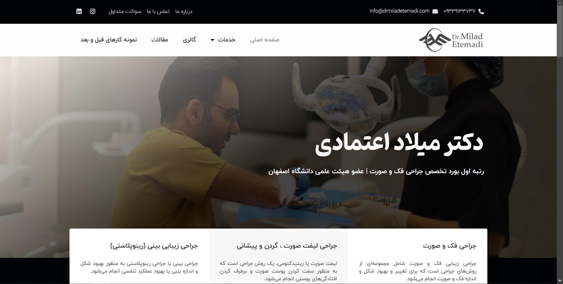 نمونه کار طراحی وب سایت پزشکی دکتر میلاد اعتمادی اصفهان