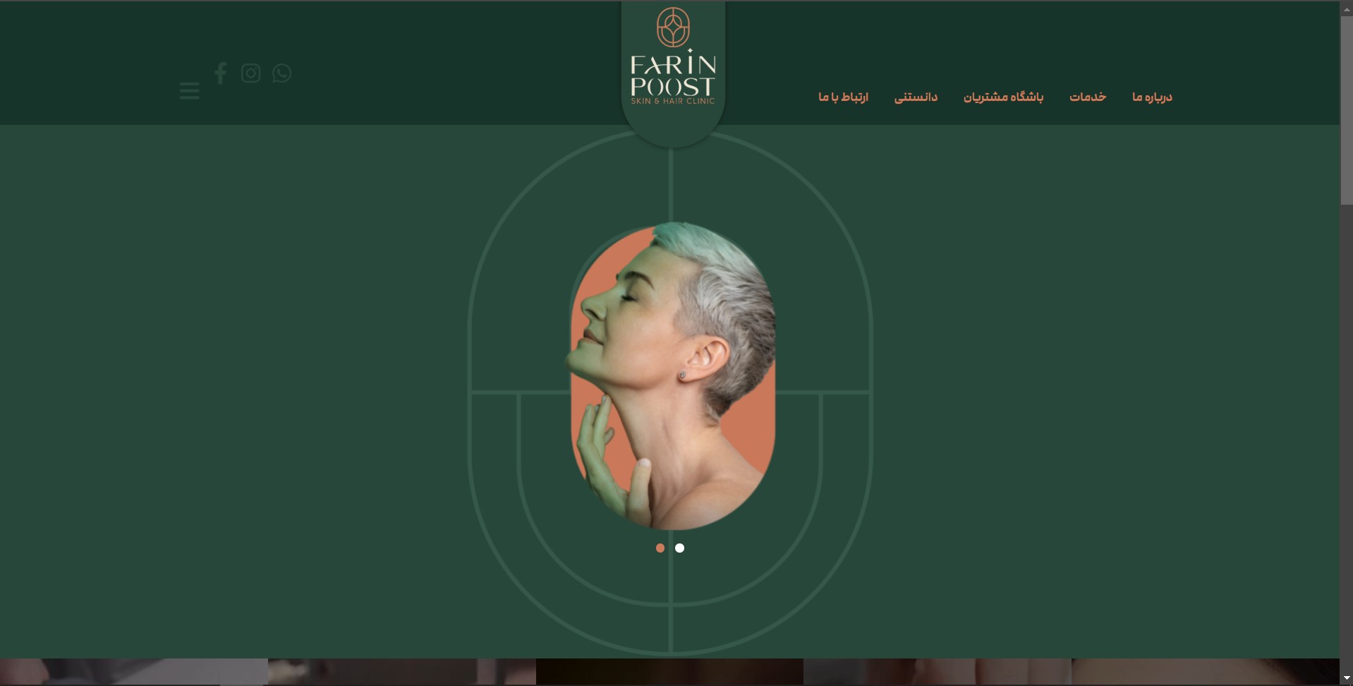 وبسایت پزشکی فرین پوست، به سفارش مجموعه فرین پوست و با تمرکز بر نیازهای خاص این حوزه طراحی شده است. این وبسایت پزشکی دارای رابط کاربری (UI) اختصاصی، طراحی کاملاً ریسپانسیو برای نمایش بینقص در تمامی دستگاهها و بخشهای متنوعی برای ارائه انواع خدمات پوستی است.